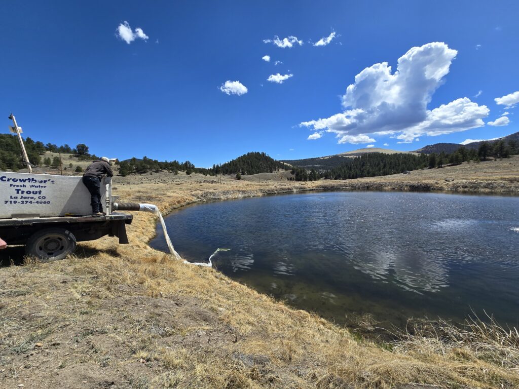 We welcomed our 2025 trout to our ponds on a beautiful sunny Saturday. 130 lbs. of trout were delivered this year and split between the upper and lower ponds.